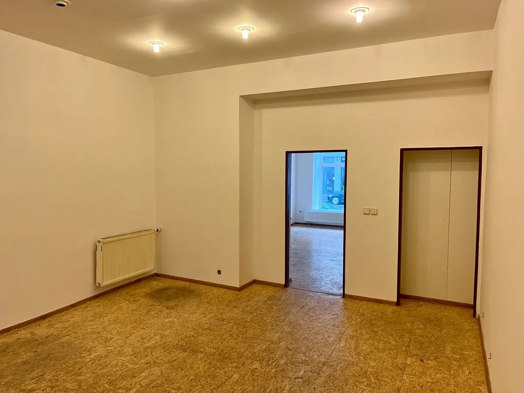 Dispozice: hlavní prostor (56 m2) se třemi výlohami do ulice, druhý prostor (24 m2). Soc zázemí (2x WC), menší sklad/prostor pro čajovou kuchyňku.