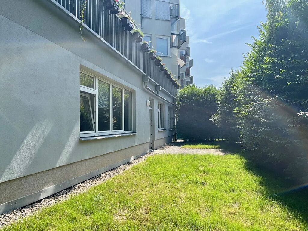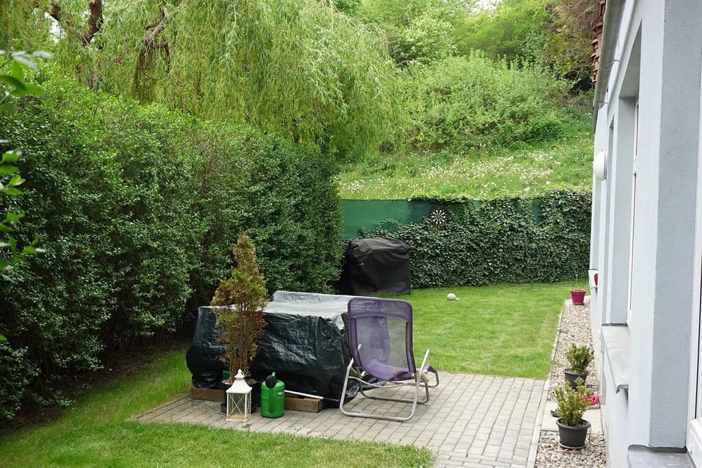 Jedná se o byt v 1. NP s vlastním pozemkem o výměře 174m2 (předzahrádka a terasa) a studnou. Předzahrádka je oddělena živým plotem a díky poloze domu zajišťuje dostatečné soukromí. Obytné pokoje i terasa jsou orientovány na JZ.
