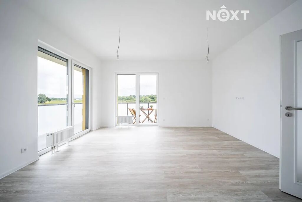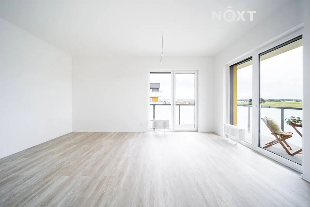 Srdcem bytu je obytná místnost s kuchyňským koutem o ploše 24,2 m², která díky rohovému uspořádání nabízí přirozené světlo ze dvou stran a přímý vstup na terasu. Kuchyňská linka je již kompletně dokončena v moderním stylu s důrazem na funkčnost, eleganci a čistý design.