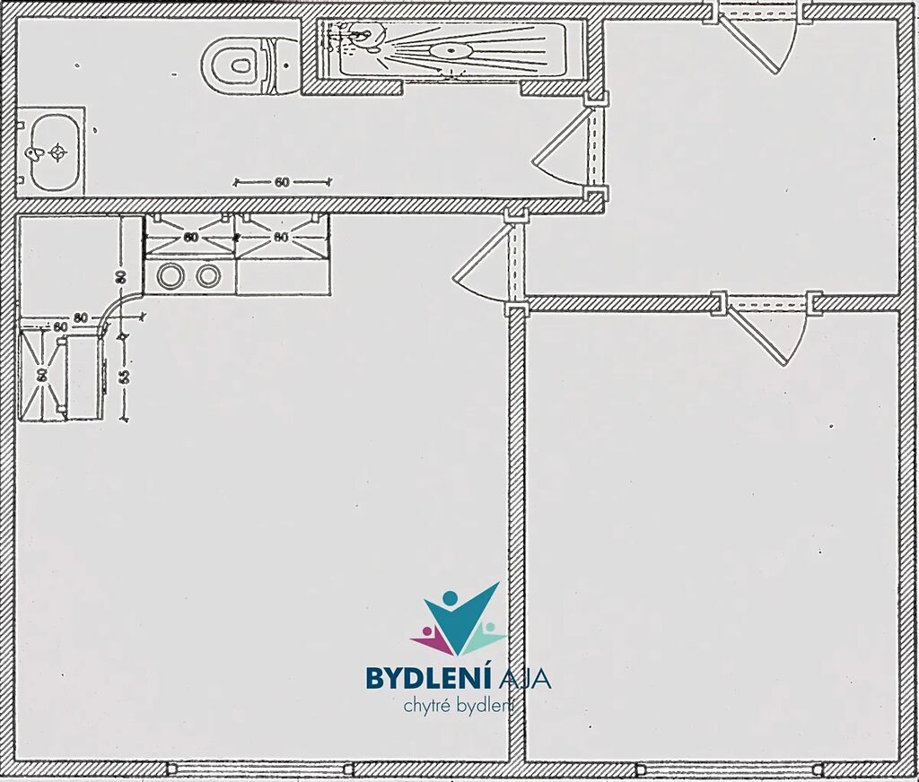 V bytě se nachází kuchyňská linka I, plovoucí podlahy, plastová okna, koupelna se spryhovým koutem a WC.