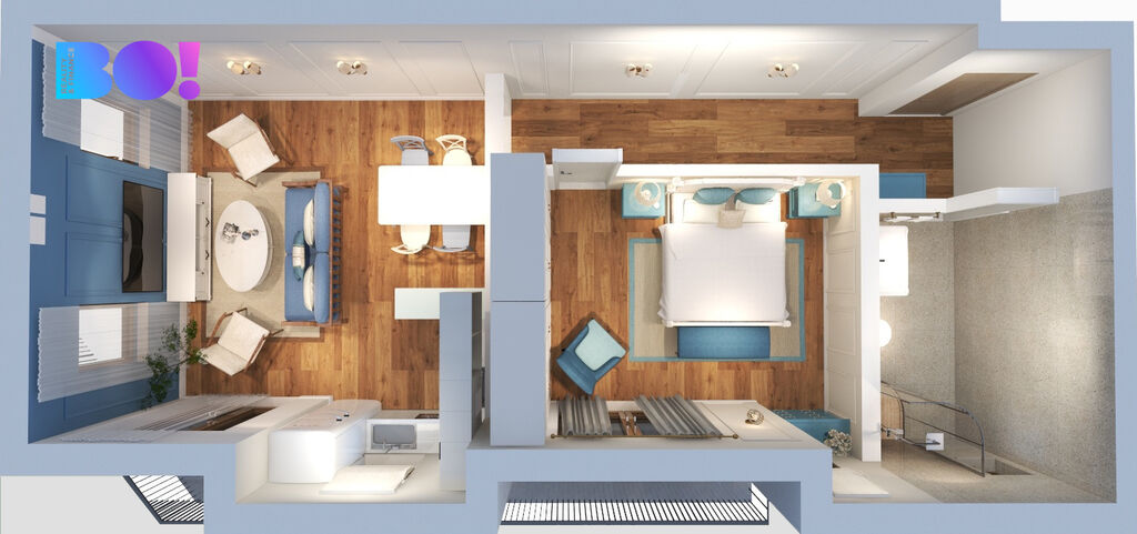 Nabízený apartmán 54.27 m² se nachází v přízemí s výhledem na moře