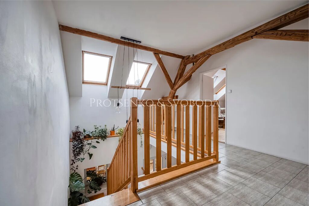 • Menší dům s dílnou a nedokončeným bytem, který nabízí prostor pro další bytovou jednotku či ateliér