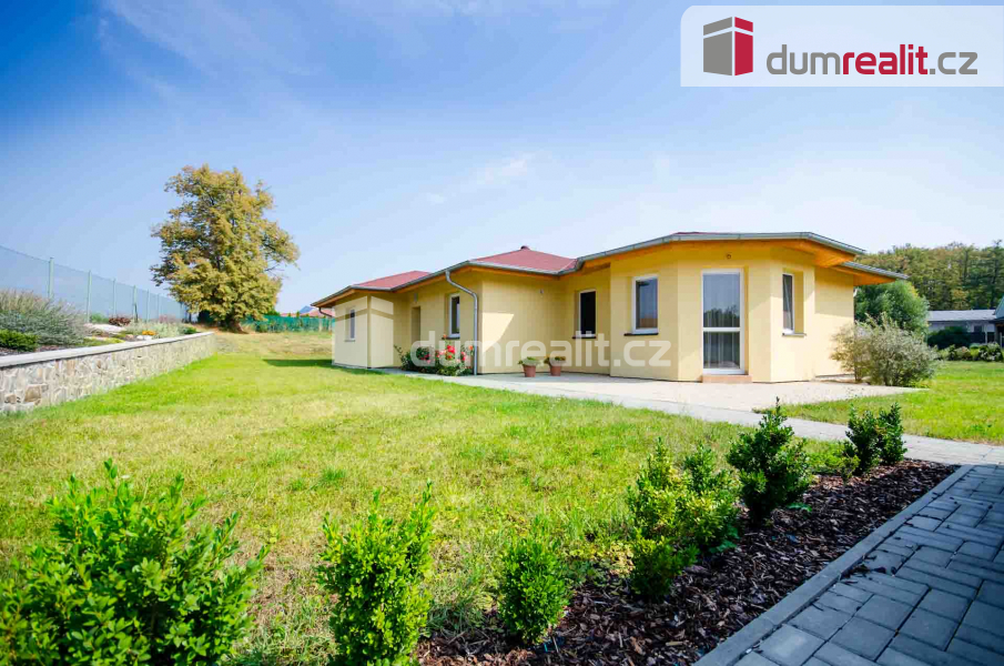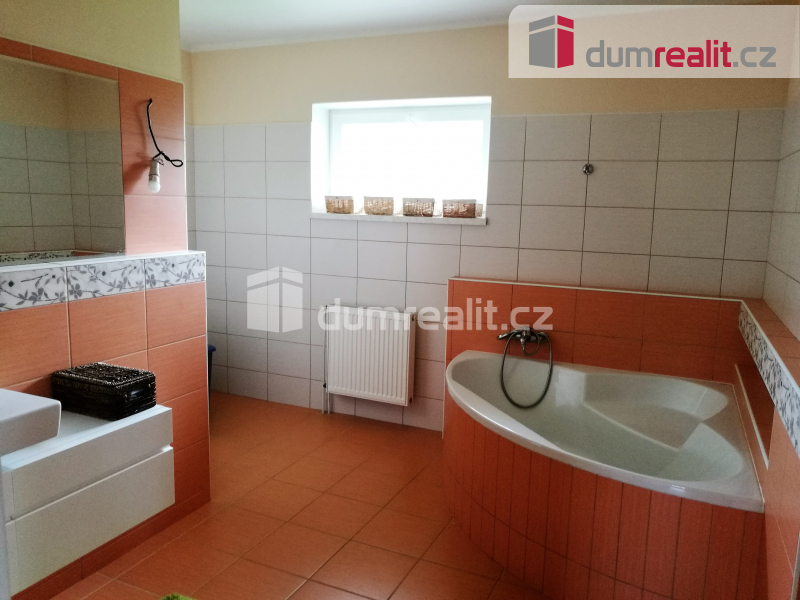 Dumrealit.cz Vám zprostředkuje pronájem přízemního rodinného domu s dispozicí 2+1, užitnou plochou cca 100m², terasou a stáním pro tři automobily ve městě Krnov-Pod Cvilínem. Jedná se o zděný dům typu bungalov, jež je tvořen bytovou jednotkou disponující obývacím pokojem propojeným s kuchyní, jedním samostatným pokojem, šatnou, koupelnou s rohovou vanou a samostatným WC. Z obývacího pokoje je vstup na prostornou terasu s výhledem na okrasnou zahradu. Pokoje jsou velké a vzdušné, částečně vybavené. Součástí kuchyňské linky je sklo-keramická deska, elektrická trouba, digestoř a lednice. O teplo domova se stará kondenzační elektrokotel (12kw) s rozvodem teplé vody do deskových radiátorů (v koupelně žebřík). Ohřev vody zajištěn elektro - bojlerem 120 l, vlastní ČOV, napojení na vodovodní řad, nově přetěsněná plastová okna s izolačními dvojskly, v téměř všech oknech sítě proti hmyzu. Plyn v domě není. Oplocené pozemky ve vstupní části opatřené posuvnou pojezdovou bránou mají výměru cca 2000m². Dům je postaven na klidném místě plném zeleně. Oblast Nízkého Jeseníku zajistí spoustu možností pro turistiku či jiné sportovní aktivity například v podobě cyklostezek. Měsíční nájemné činí 17.500,-Kč + elektřina a voda přepisem na nájemníka. Kauce ve výši 50 000 Kč ,- , provize RK jeden měsíční nájem. Pronájem vhodný pro max. tři osoby, pracující, nekuřáky. Malý domácí mazlíček nevadí. Volný ihned! V případě dotazů či zájmu o prohlídku neváhejte kontaktovat makléře. Ev. číslo: 638903.