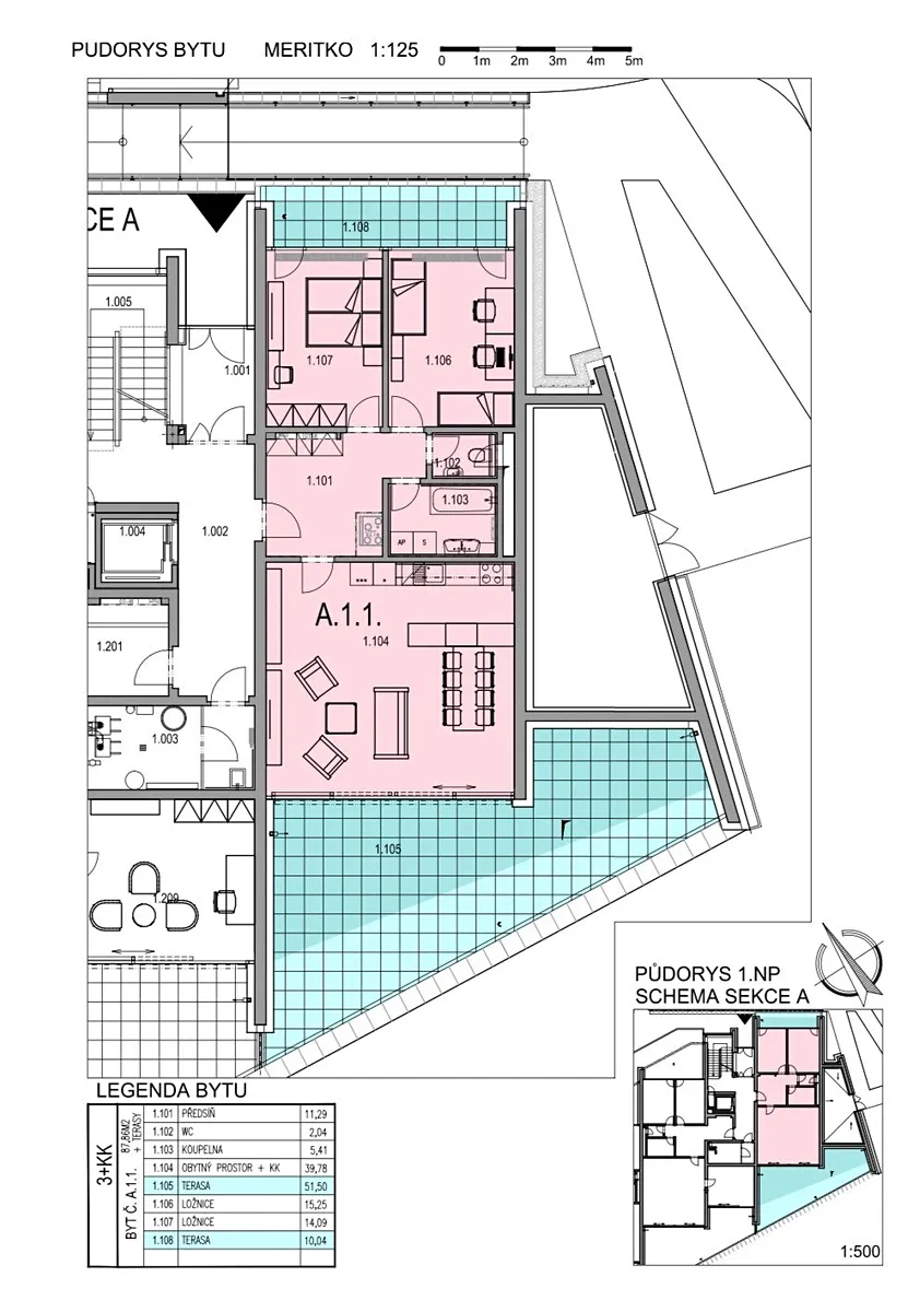 Předmětem nájmu je byt o dispozici 3+kk o užitné ploše 88 m², 2x terasa 52 m2 a 10 m2, který je umístěný v 1. nadzemním podlažím.