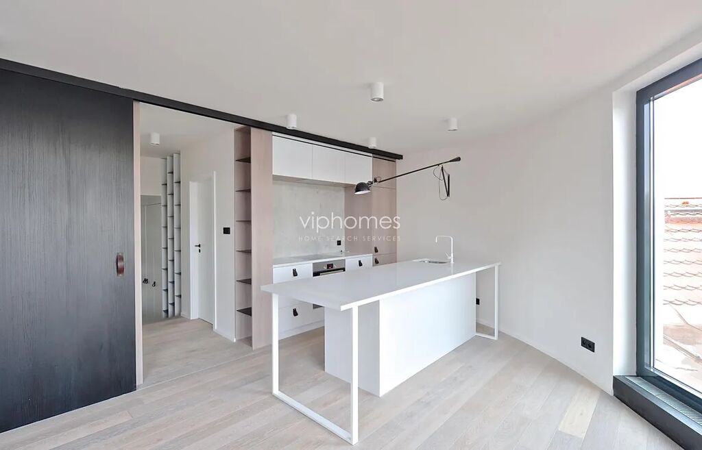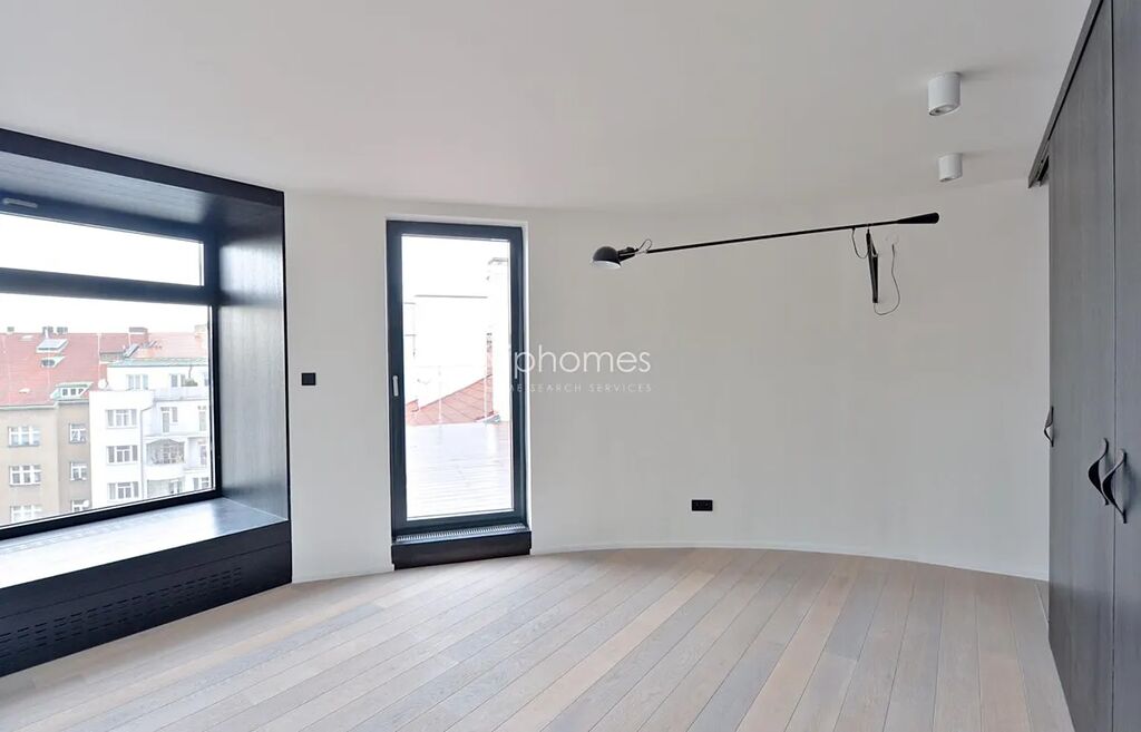Výjimeční designový byt 2kk, (2 terasy 60 + 40 m2), sitovaný v 5. patře / 6. NP. kompletně zrekonstruované rezidenční budovy v secesním stylu, v jedné z nejžádanějších částí Prahy, přímo na prestižním Náměstí Jiřího z Poděbrad. Budete okouzleni výhledem na avantgardní architektonickou stavbu kostela Nejsvětějšího srdce Páně, osobité dílo slovinského architekta Jože Plečnika a celé náměstí s typickou energií a atmosférou Vinohrad. Najdete zde jak významná nákupní centra např. Palác Flóra a Vinohradský pavilon pro Vaše pohodlné nákupy, tak i divadla (Divadlo na Vinohradech, Smetanovo divadlo), parky a vyhlídky, možnosti k posezení v četných restauracích a kavárnách. Díky výhodnému dopravnímu spojení se brzy dostanete do samotného centra města, ale i za jeho hranice, a to jak automobilem tak MHD.