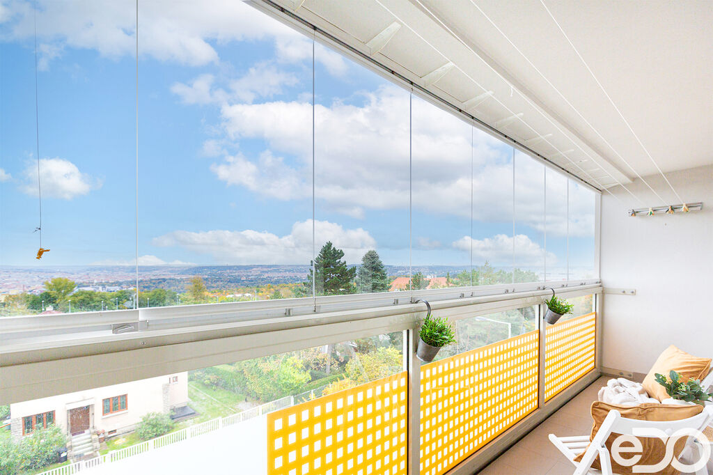 Příslušenstvím je lodžie (6 m2) s úžasným výhledem na Prahu, na kterou je vstup z obývacího pokoje, dále komora na patře. Parkování je možné přímo před domem.