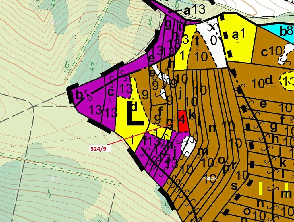 Lesní pozemek o výměře 1978 m2, parcelní číslo 324/9, podíl 1/1, katastrální území Chotěbudice, obec Chotěbudice, obec s rozšířenou působností Moravské Budějovice, okres Třebíč, Kraj Vysočina. Po těžbě.