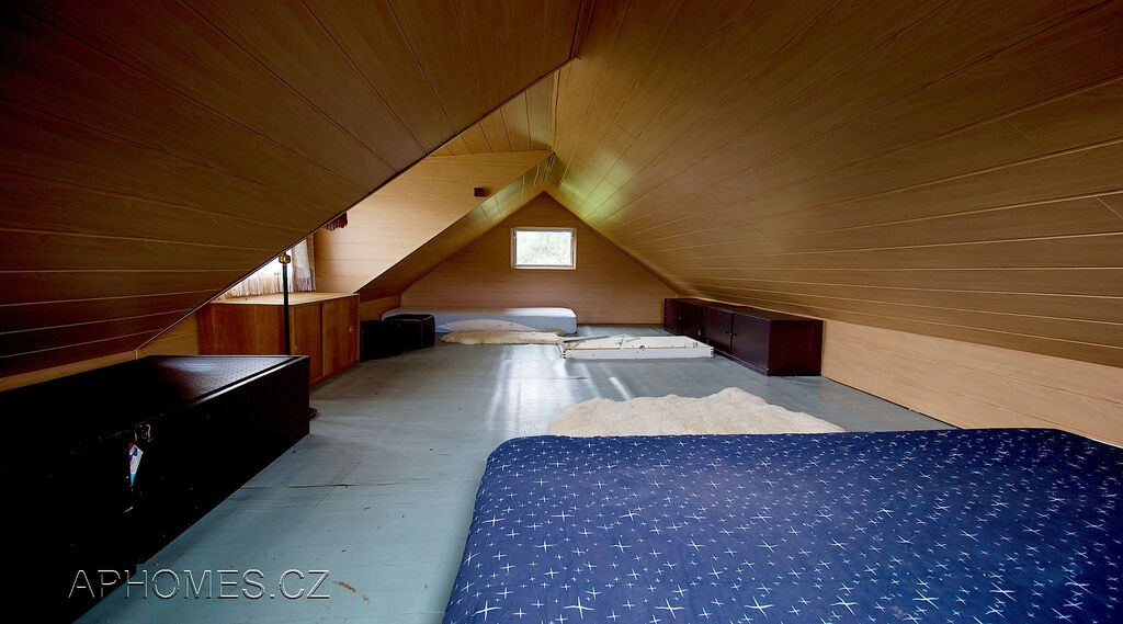 V obývacím pokoji se nachází stropní sklopné schodiště, které umožní přístup do horního prostorného pokoje.