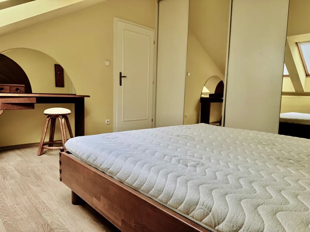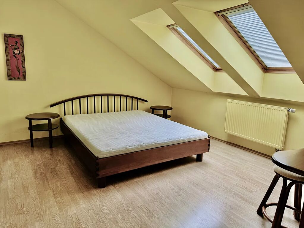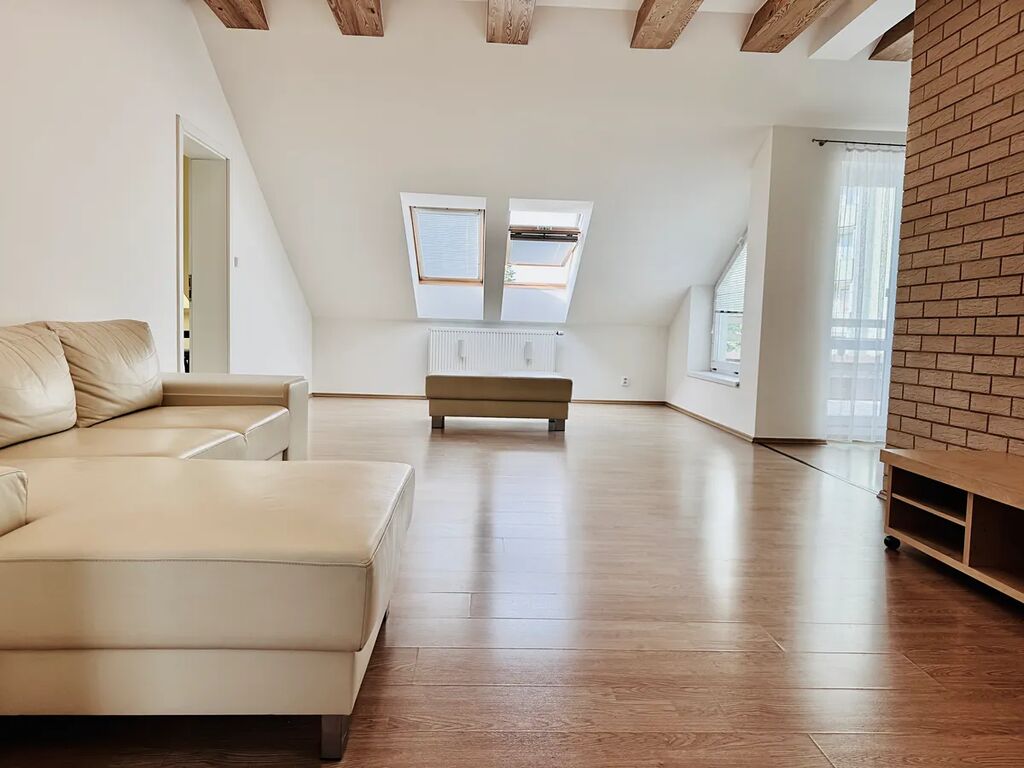 I když se jedná o mezonetový byt, tak vzhledem k velikosti a vysokým stropům nejsou šikminy bytu omezující.