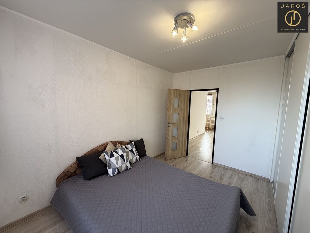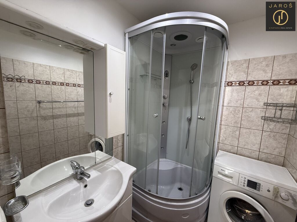 Po vstupu do bytu vás přivítá prostorná chodba, ze které je vstup do praktické spižírny, na samostatnou toaletu a do koupelny se sprchovým koutem. Byt disponuje dvěma neprůchozími pokoji a velkým obývacím pokojem, který je propojen s kuchyní a jídelní částí. Kuchyň je vybavena spotřebiči a nabízí dostatek úložného prostoru i místa pro rodinné stolování.