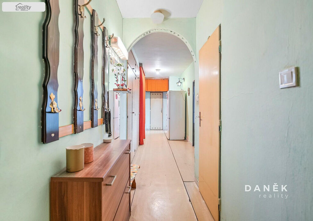 Byt je v původním stavu, vhodný k rekonstrukci podle vašich představ. Hlavní místností je obývací pokoj, odkud můžete vyjít na balkon o velikosti 2 m². Dva samostatné pokoje poslouží jako ložnice a dětský pokoj, případně pracovna. Pokoje a kuchyně jsou orientovány na východ, obývací pokoj potom na západ. K bytu také náleží velmi prostorný sklep o velikosti 11,5 m².