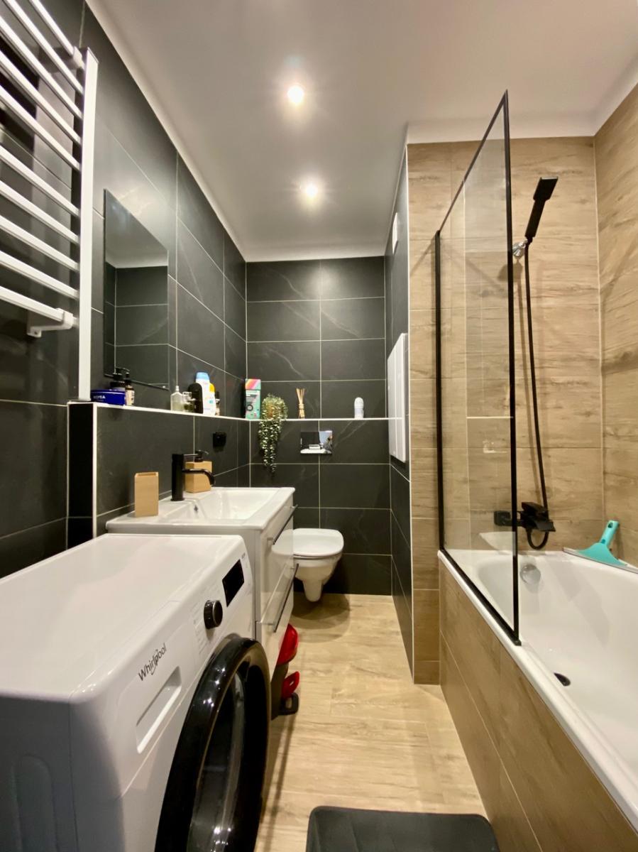 - Moderní koupelna s vanou a toaletou
