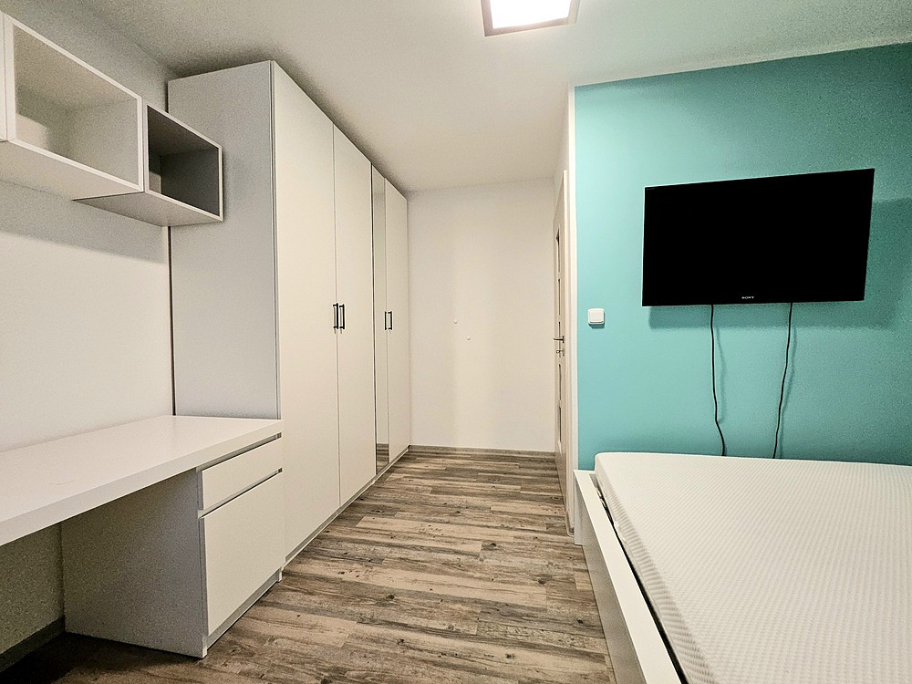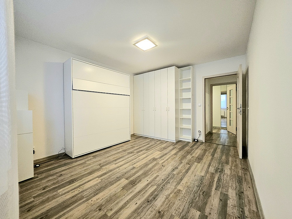 Bytová jednotka se nabízí částečně zařízená, zánovním nábyktem, kuch. linka včetně spotřebičů (lednice s mrazničkou, indukční varná deska, horkovzdušná trouba, digestoř, myčka nádobí, jídelní stůl, skříně v obýváku, policové díly, ve všech pokojích jsou šatní skříně, ve dvou pokojích jsou k dispozici skříňové postele (jednolůžko a dvoujlůžko), ve třetím pokoji dvojlůžko, psací stůl a policové díly (viz. fotografie), koupelnový nábytek, botníky a vestavěné skříně, byt nabízí velké množství úložných prostor, po dohodě lze vystěhovat postele.