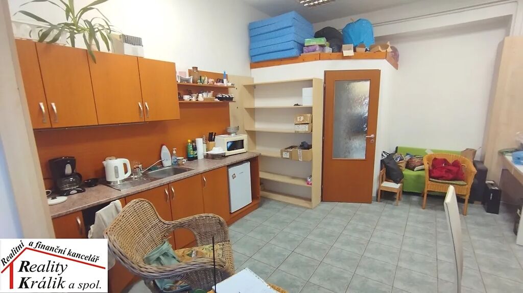 Dispozice: hlavní prodejní prostory o výměře cca 47m2, kancelář s kuchyňskou linkou, sklad, komora, 1x WC s umyvadlem, 1 úklidová komora s WC, koupelna se sprchovým koutem a umyvadlem (celk.výměra 90m2). Ve všech prostorách je položena dlažba. Topení je ústřední plynové s kombinovaným kotlem i na ohřev vody. (Kotel staří cca 2 roky). K prodejně patří podíl ve výši 1/10 na společném dvoře o výměře 421m2. Na dvůr je vstup jak s komory, tak i z kanceláře.
