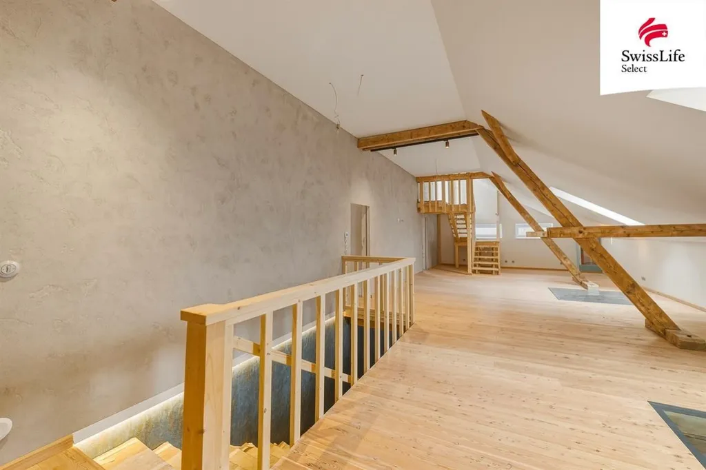 Horní podlaží lze dokončit podle potřeb nového majitele jako kancelářské prostory, ateliéry nebo zázemí firmy. Na boku objektu se nachází malá garáž a technická místnost s přípravou pro další technologie.