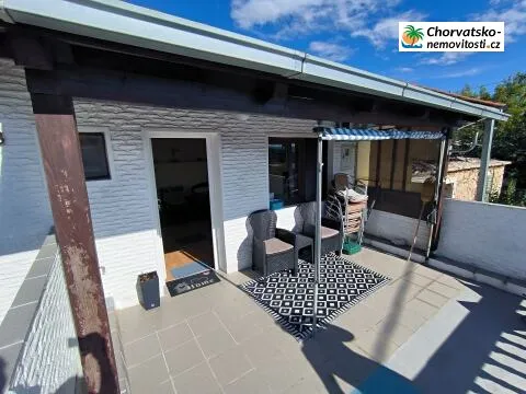V horním patře se nachází menší studiový apartmán s malou terasou s otevřeným výhledem na ostrov Krk a moře. Dům je ihned k nastěhování se zařízením. K domu náleží zahrada - 35 m2