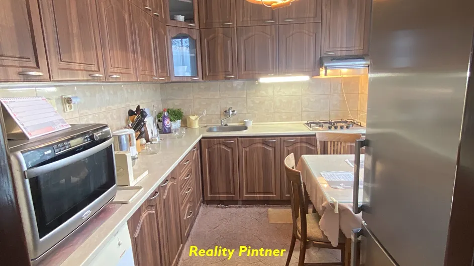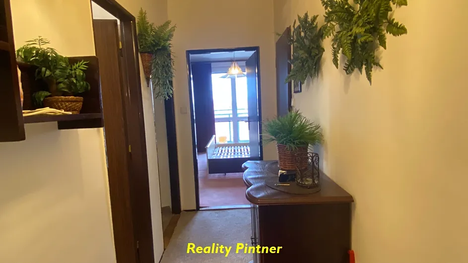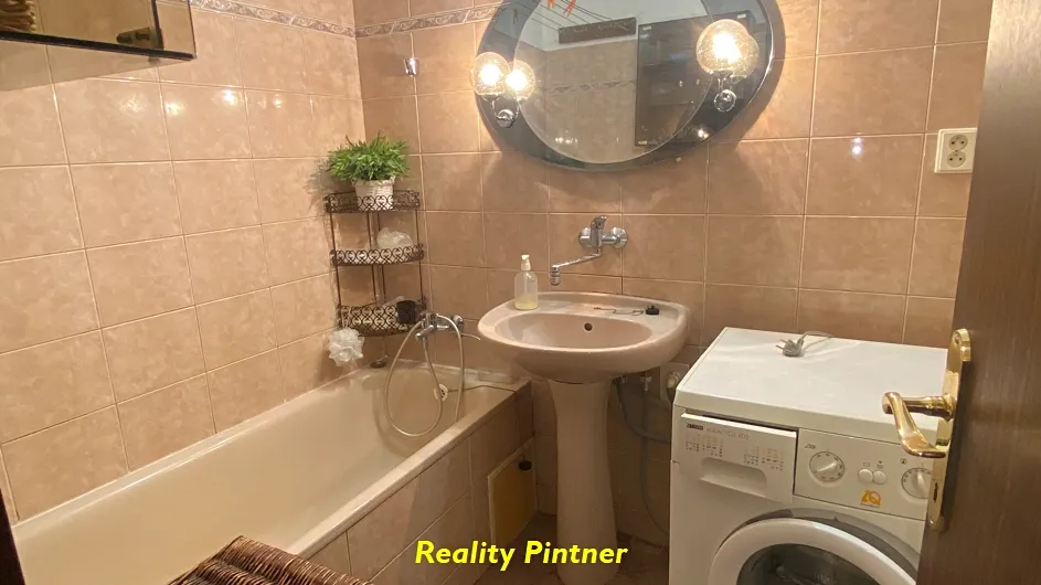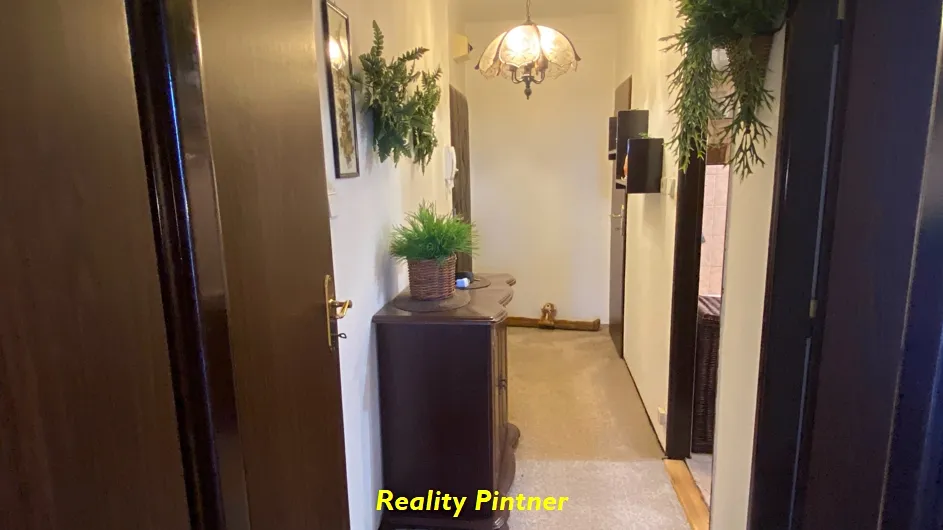Byt se nabízí zařízený. Na podlahách jsou koberce a v kuchyni, toaletě, koupelně je pod kobercem dlažba, jinak původní krytina z PVC. Bytové jádro je vyzděné se samostatnou toaletou a v koupelně s vanou. Původní průchod z koupelny do kuchyně je zazděný.