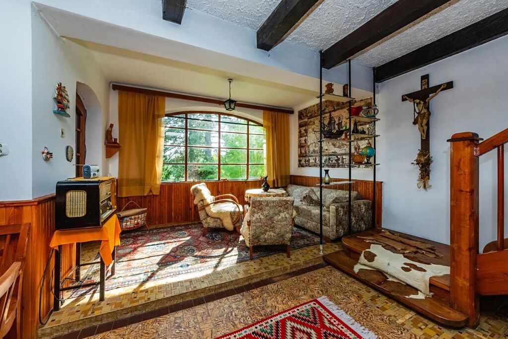V 1. nadzemním podlaží vily se nachází vstupní chodba, obývací pokoj s krbem a schodištěm do 2.NP, koupelna a kuchyňka, v 2. nadzemním podlaží se nachází centrální chodba a tři samostatné ložnice.