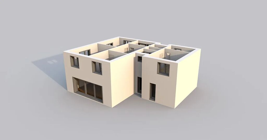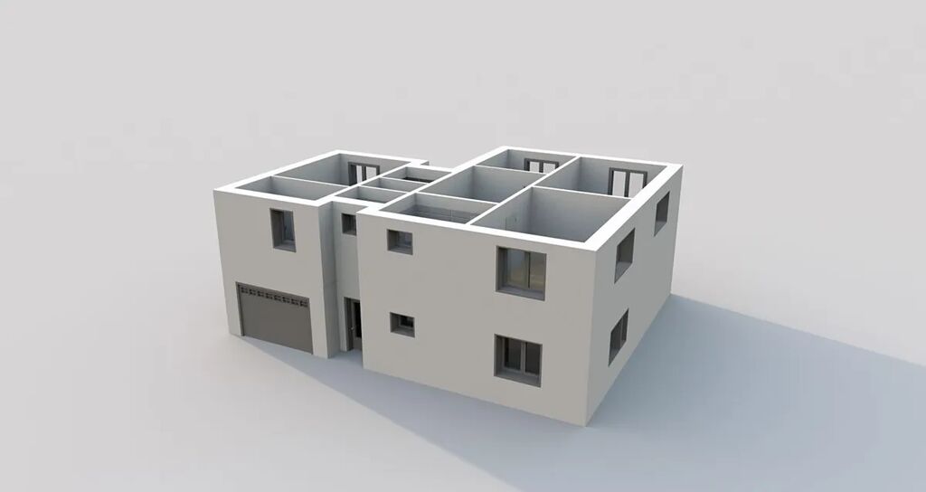 Dvoupodlažní budova sestává v přízemí ze zádveří 3,53 m2, chodby se zázemím 8,18 m2, prostorné obývací místnosti 46,44 m2, kuchyně 11,79 m2, toalety 1,48 m2, umývárny 2,16 m2 a garáže 20,94 m2. Celková užitná plocha 94,52 m2.