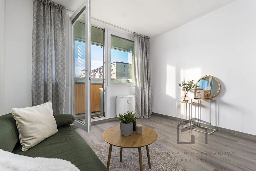 Byt o velikosti 33 m2, se nachází ve 2.nadzemním podlaží panelového domu s trojicí výtahů a recepcí v domě. Bytová jednotka disponuje vstupní chodbou se samostatnými vstupy do koupelny, na toaletu, do kuchyně a obývacího pokoje. Kuchyňská linka značky IKEA je vybavena vestavěnou horkovzdušnou troubou, varnou deskou, digestoří a dostatkem úložného prostoru. V kuchyni je místo na jídelní stůl a lednice s mrazákem, která stejně jako pračka, může být majiteli zakoupena. V obývacím pokoji je prostor na spaní i menší pohovku a vstup na zaklenou lodžii (3 m2) s příjemným výhledem. Nábytek je pouze ilustrační a není součástí pronájmu a v bytě jej nelze ponechat. Koupelna se sprchovým koutem a místem na pračku je od toalety oddělená. K bytu NEnáleží sklepní kóje. Byt je vhodný pro 1 maximálně 2 osoby. Preferujeme nájemce bez domácích mazlíčků.