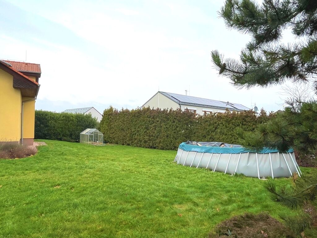 Pozemek má celkovou výměru cca 1 300 m² a tvoří jej udržovaná, vzrostlá zahrada se zázemím pro rodinné posezení na terase. Parkování je možné v garáži i na vlastním pozemku před domem.