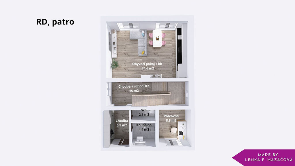 – dispozice domu 5+kk – ideální prostor pro větší rodinu i práci z domova
