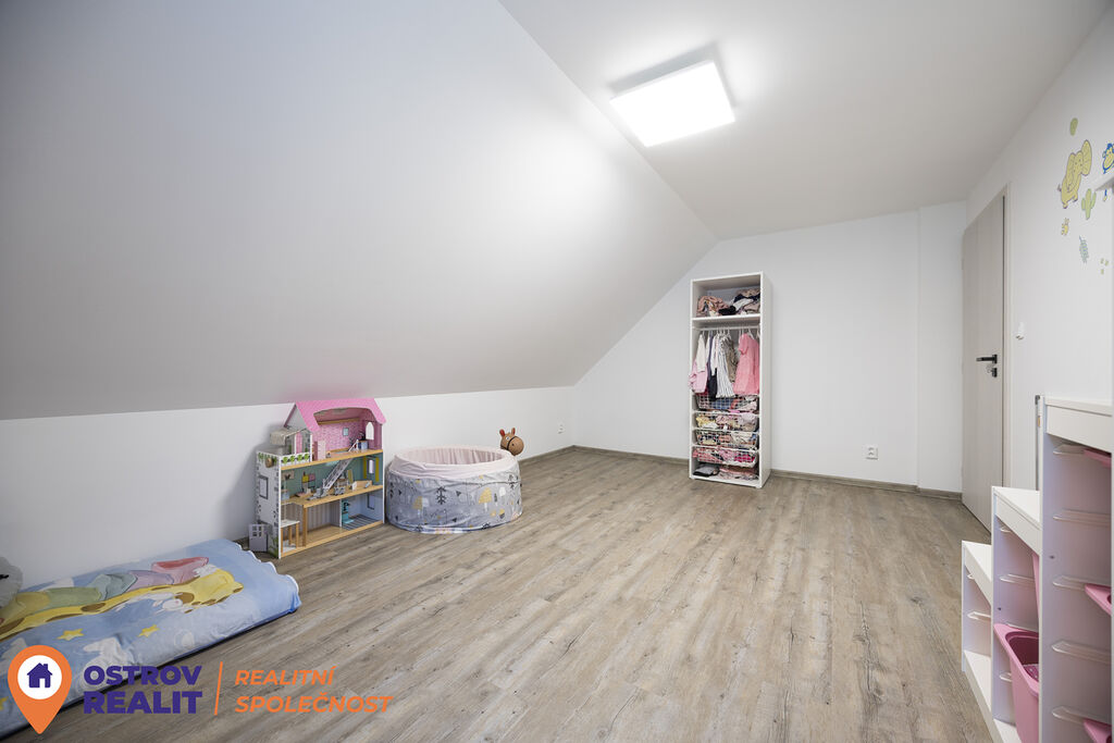 V patře domu najdete tři samostatné pokoje – dostatek prostoru pro celou rodinu, kde každý bude mít svůj klid a soukromí. Nechybí ani prostorná koupelna, která jen čeká na to, až si ji doladíte podle vlastního vkusu a potřeb. A nesmíme zapomenout na velkorysou chodbu – úžasný prostor, který můžete využít třeba jako čtecí koutek, hernu pro děti nebo prostě jen místo, kde se bude dobře dýchat.