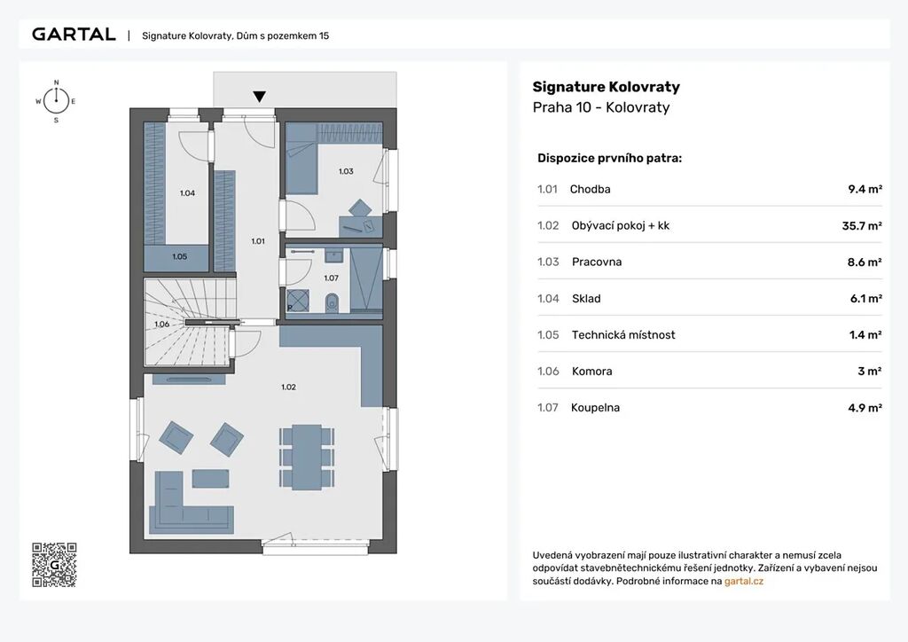 Toužíte po domě, kde jen zavřete dveře a hned ucítíte, že tady jste doma? Máme pro vás nabídku, které vám do detailu splní sen o vlastním bydlení. Nabízíme k prodeji moderní rodinný dům se zahradou o dispozici 5+kk (SK15B) o celkové ploše 145 m2 v klidné lokalitě Prahy 10 na vlastním pozemku o výměře 390 m2. První, co si na svém novém domovu zamilujete, je prostor. Je ho tu tolik. Domy jsou promyšlené do posledního metru čtverečního a s dostatkem úložných řešení. Obývací pokoj je spojený s kuchyní, v ložnici na vás čeká soukromá šatna, kde si každé ráno v klidu vyberete outfit, ve kterém se budete cítit skvěle celý den, a děti půjdete postupně budit do dvou velkých samostatných pokojů. Pokud pracujete z domova určitě oceníte také útulnou pracovnu.