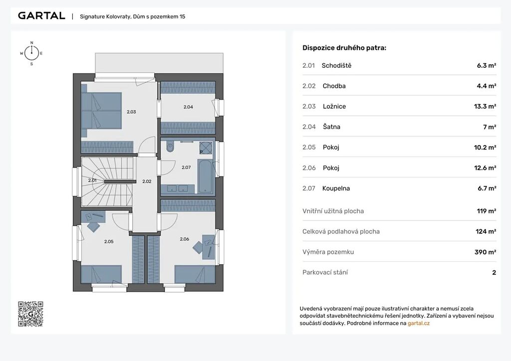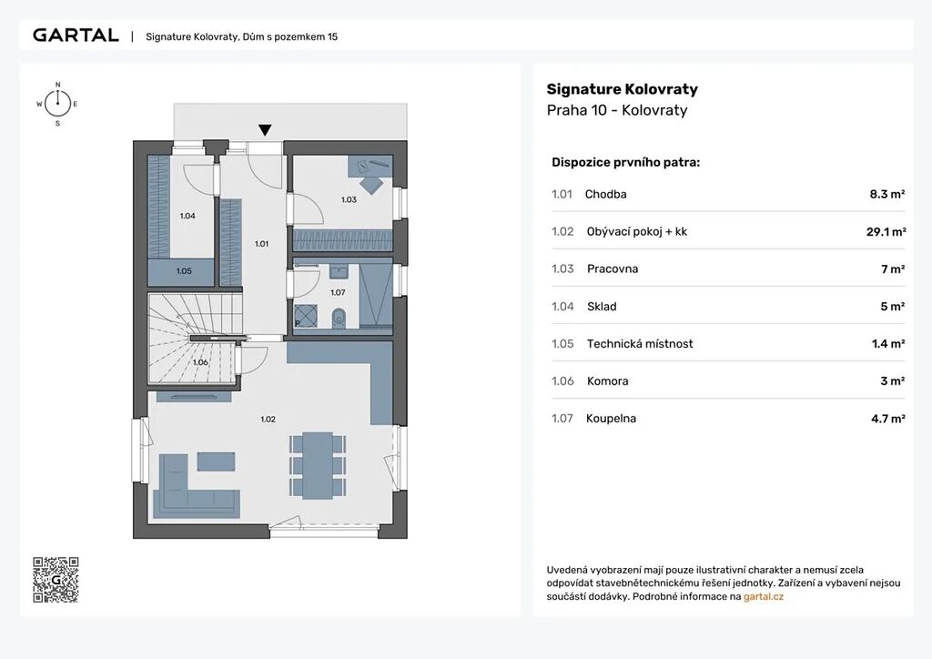 Toužíte po domě, kde jen zavřete dveře a hned ucítíte, že tady jste doma? Máme pro vás nabídku, které vám do detailu splní sen o vlastním bydlení. Nabízíme k prodeji moderní rodinný dům se zahradou o dispozici 5+kk (SK15) o celkové ploše 124 m2 v klidné lokalitě Prahy 10 na vlastním pozemku o výměře 390 m2. První, co si na svém novém domovu zamilujete, je prostor. Je ho tu tolik. Domy jsou promyšlené do posledního metru čtverečního a s dostatkem úložných řešení. Obývací pokoj je spojený s kuchyní, v ložnici na vás čeká soukromá šatna, kde si každé ráno v klidu vyberete outfit, ve kterém se budete cítit skvěle celý den, a děti půjdete postupně budit do dvou velkých samostatných pokojů. Pokud pracujete z domova určitě oceníte také útulnou pracovnu.