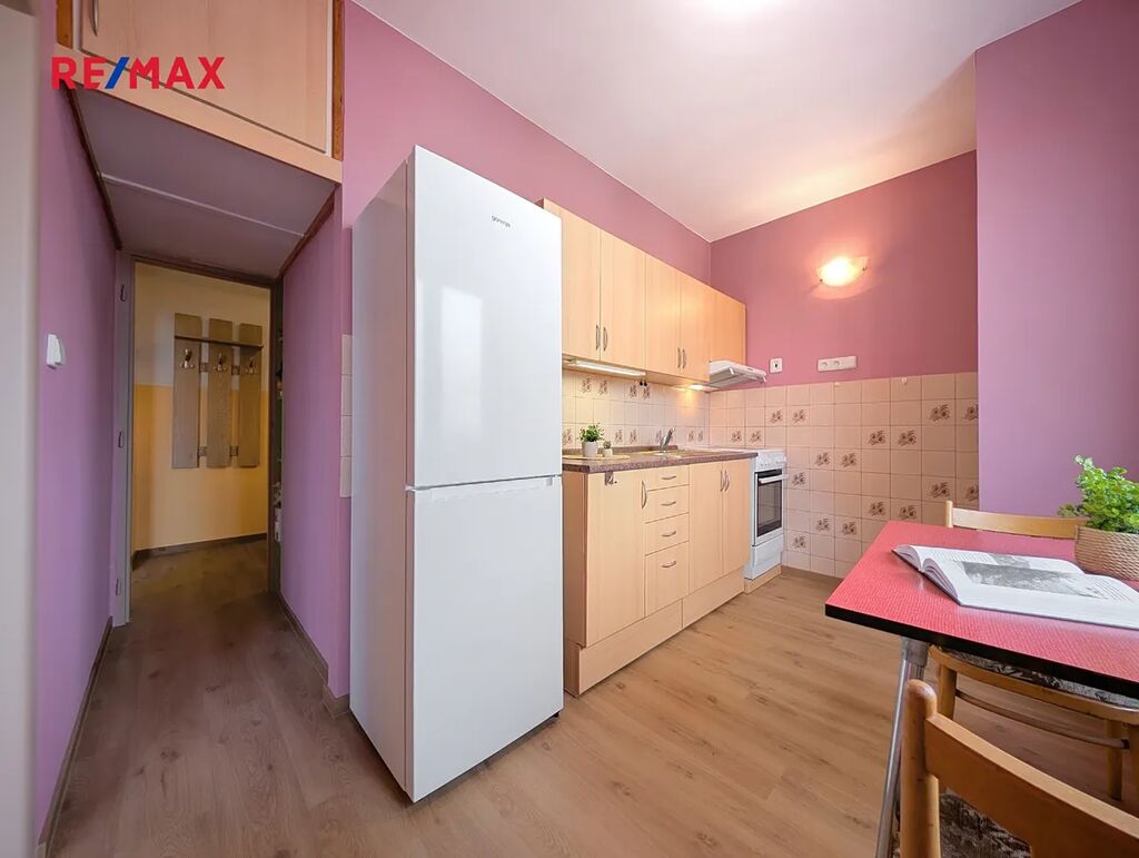 V kuchyni je k dispozici kuchyňská linka vybavená elektrickou troubou, varnou deskou a novou lednicí.