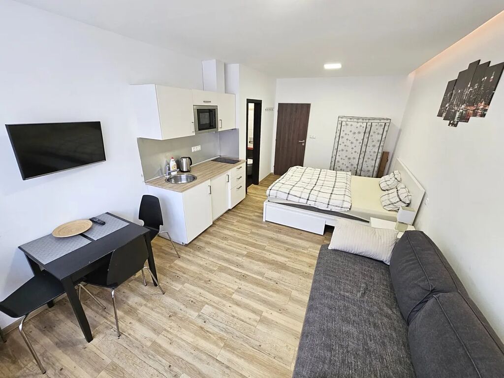 Byt je kompletně zařízený a vhodný pro jednu osobu.