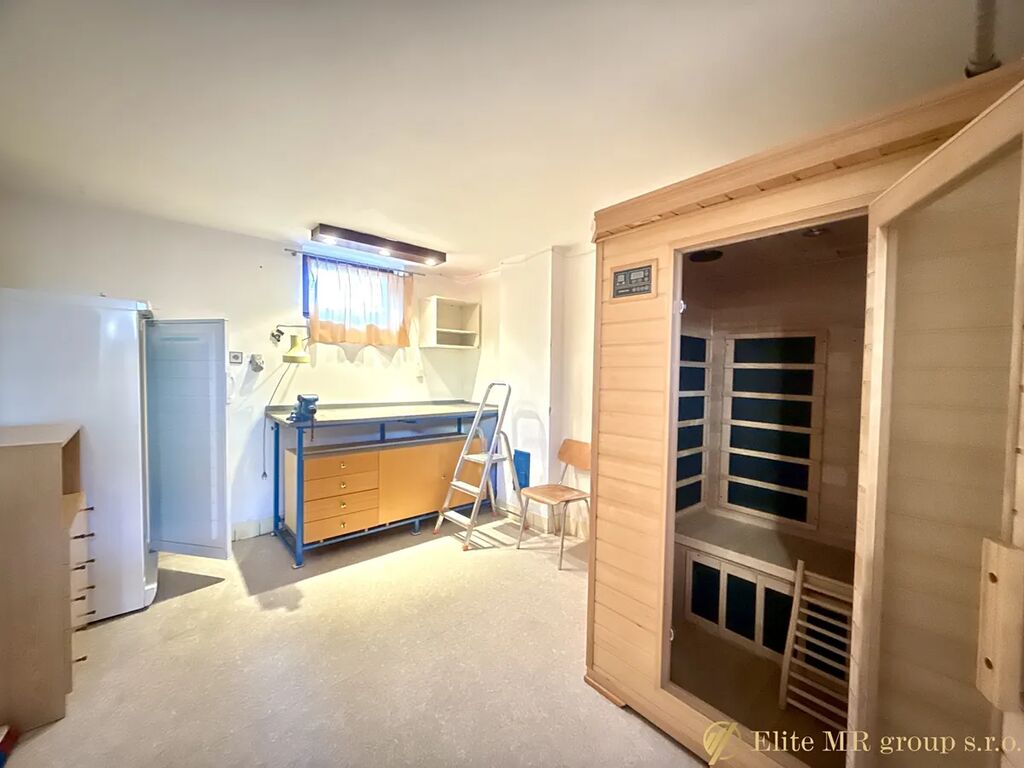 Dispozičně je dům řešen takto: přízemí - vstupní chodba, hala, obývací pokoj s jídelním koutem, kuchyň, WC. Patro - 3 pokoje, koupelna s WC. Dům je celý podsklepený, nachází se zde velkorysý prostor rozdělený do několika místností včetně "prádelny" a místnosti se saunou. Určitě oceníte garáž a prostor vedoucí od vrat s dostatkem parkovacího místa. Dále je zde pěkná, udržovaná zahrada s posezením v pergole a bazén, který nebyl několik let používán, ale je funkční a není problém ho znovu zprovoznit.
