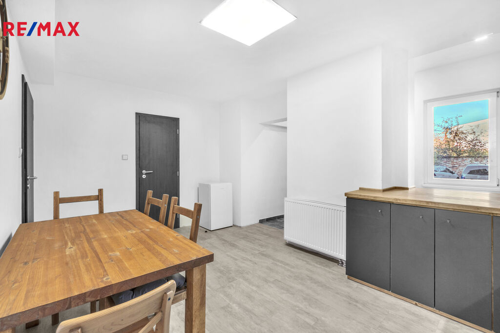Dispozice bytu je 2+1, dominantu bytu tvoří otevřená renovovaná kuchyň 14,9 m2, chodba 5,6 m2, koupelna se záchodem 4,8 m2, komora 1,5 m2 a dva pokoje o velikosti 11,6 a 15,9 m2. V přízemí domu je k dispozici větší sklep 4,2 m2. Byt je orientován na jih a sever, výhodou této orientace je prosvětlenost a větratelnost obydlí. Parkování je pro tento byt vyhrazené uvnitř dvora a to přímo před bytem o šířce cca 4,4 m, plánovaná nová zámková dlažba, kde je možno v letních měsících v soukromí posedět nebo grilovat. Převážná část spotřebičů je nová. Nové technické rozvody, vytápění elektrokotlem. Do budoucna bude na domě opravená fasáda, okna a nová vrata.