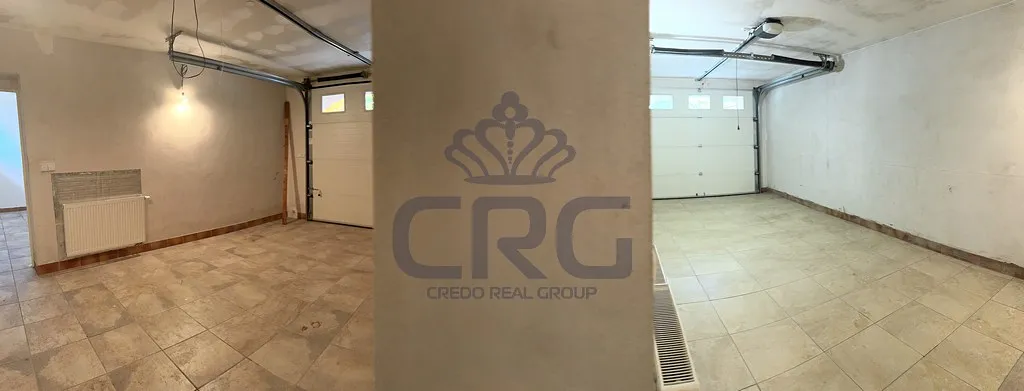 Bezpečnostními dveřmi vejdeme do předsíně o výměře cca 5,3 m2. Tato místnost je vybavena vestavnou skříní a botníkem. Ze vstupní haly vejdeme do schodišťové haly o celkové ploše cca 6,8 m2, ze které je vstup do kotelny, která zároveň slouží i jako nedokončená koupelna se sprchovým koutem a rohovou vanou. V této místnosti se také nachází plynový kondenzační kotel značky THRi-GeminoX, který zajišťuje i ohřev vody se zásobníkem cca 250 litrů. Celková plocha této místnosti činí cca 12,5 m2. Z haly je mimo jiné vstup do dvou sklepů, každý o výměře cca 12 m2. Z jednoho ze sklepů je vstup do dvou garáží, které jsou sice samostatné, ale navzájem průchozí. Jedna o výměře cca 18,7 m2 druhá cca 21,75 m2. V menší garáži je malé umyvadlo a zásobník na centrální vysavač Elektrolux, který je rozveden po domě.