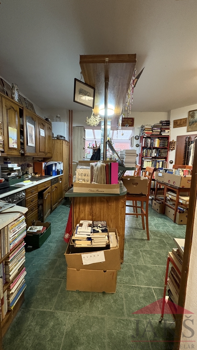 Popis: suterén (cca 60 m2): část. podsklepeno: chodba, potravinový sklep, kotelna (plynový kotel, moderní kotel na dřevo, el. boiler a vývody na pračku), koupelna (rohová vana, sprchový kout, umyvadlo se zrcadlem a skříňkou, topný žebřík a 2x WC), dvou-garáž s el. vraty; přízemí (85,9 m2): obchod: 2x prodejní místnost, chodba, schodiště (do sklepa a do podkroví), sam. WC s umyv., původní obytná kuchyň (kuch. linka s barem a vestavěnými spotřebiči: HV trouba, sklo.ker. deska, digestoř, myčka) s jídelnou, prosklený obývací pokoj (nyní vše užíváno jako prodejna) se vstupem na terasu (posezení); podkroví (49 m2): byt 3+kk: obývací pokoj s kuch. koutem (rohová kuch. linka s HV troubou a dvou-vařičem (sklo-ker.) a digestoří) se spíží, koupelna (umyv. se zrcadlem, sprchový kout, WC, průtokový ohřívač), 2x podkrovní ložnice, šatna a půdička (sklad).