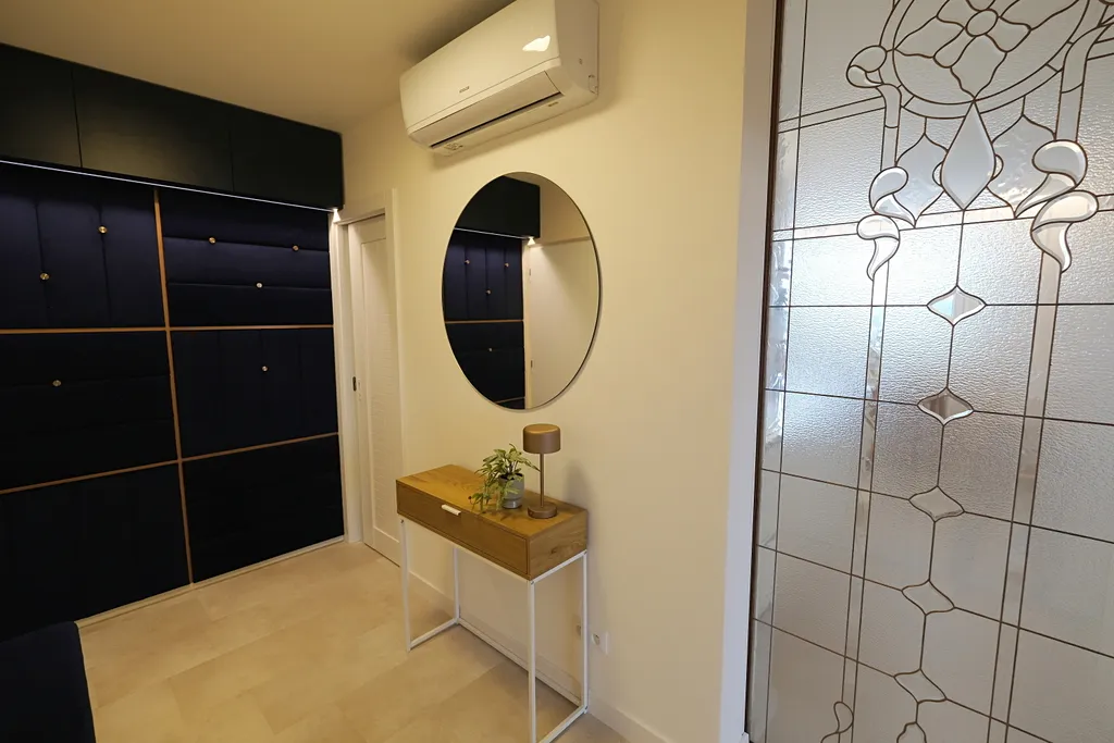 Nabízíme dlouhodobý pronájem luxusního bytu po celkové velmi vydařené rekonstrukci s dispozicí 2+1 v žádané lokalitě Uherského Brodu - části Šaripova. Jedná se o komfortní bydlení s dobrou dostupností do centra města s krásným výhledem na okolí. Celý interiér navrhla bytová designérka, která splnila funkčnost, praktičnost a styl celého bytu. Dispozičně se jedná o vstupní chodbu s klimatizací, odkládacím prostorem a šatnou. Kuchyň je oddělena posuvnými dveřmi s vitrážovou výplní, je zde nová kuchyňská linka s mnoha úložnými prostory a vestavěnými spotřebiči - lednice s mrazákem, myčka, pračka, indukční varná deska, horkovzdušná a mikrovlnná trouba a jídelní stůl se čtyřmi židlemi. Obývací pokoj je zařízen rozkládací sedací soupravou se vstupem na lodžii. Samostatná ložnice je orientovaná na jihozápad. V koupelně se nachází vana se zástěnou, kvalitní umyvadlo se skříňkou, žebříkový radiátor, skříňka s úložným prostorem a toaleta. Podlahy jsou řešeny novými dřevěnými parkety a dlažbou. K bytu náleží sklepní kóje umístěná v přízemí bytového domu. Parkování je možné přímo u domu. Nájem činí 16.500,-Kč/měsíčně + 3.500,-Kč/měsíčně energie + elektřina. Byt je ihned k dispozicí.