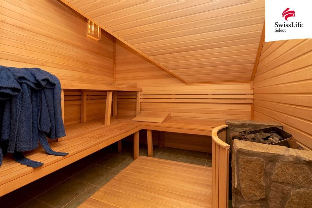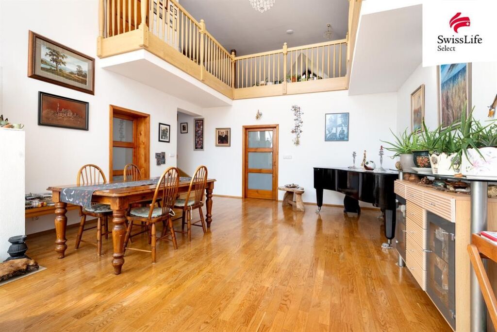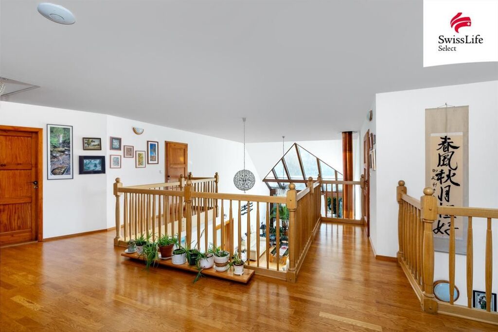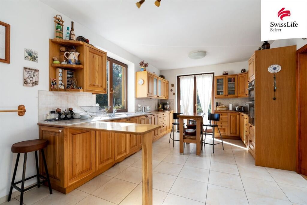 Uvnitř domu vás přivítá příjemná atmosféra, promyšlený interiér a více než dostatek přirozeného světla. Celé přízemí je kompletně bezbariérové. Dispozice navržená panem ing. arch. Milanem Šindlerem zahrnuje prostorný centrální obývací pokoj s částečně proskleným stropem a s francouzským oknem vedoucím na zastíněnou terasu, kuchyň se spíží, s linkou z masivu a s venkovním útulným posezením pro dva, dále tři samostatné ložnice s koupelnami, tři pokoje (hudebna, pracovna, technická místnost) a v neposlední řadě vnitřní verandu nad obývacím pokojem proměněnou ve studovnu a čítárnu ideální místo pro chvíle ticha, vůni knih a klidné večery. V domě se dále ještě nachází velká vstupní hala, šatna, čtvrtá koupelna (s pračkou, sprchovým koutem a toaletou) a další samostatná toaleta vedle pracovny. Co nemohu ve svém výčtu opomenout, je krásná sauna v prvním patře, vedle které je k dispozici sprchový kout. Půda domu je připravena pro vestavbu, kterou je možné získat další prostory k bydlení.