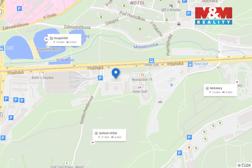 Nabízíme prodej bytu o dispozici 1+kk a podlahové ploše 28,6 m2, v katastru vedeného jako ateliér, situovaného ve 3. patře bytového domu v klidné části Praha 5 - Motol, ul. Plzeňská. Budova byla kolaudována v roce 2015, jedná se tak v podstatě o zánovní byt. K dispozici je zde EURO okno s izolačním dvojsklem, kuchyňská linka s dvouplotýnkovou sklokeramickou deskou, myčkou, ledničkou, mikrovlnou troubou a digestoří. V koupelně je sprchový kout, otopný žebřík (do el. zásuvky) a závěsné WC. Moderní vnitřní i vchodové dveře. Byt se prodává včetně vybavení. Objekt má centrální vytápění a samozřejmě je zateplený (ener. náročnost B). Vstup je na čip a k dispozici je výtah. Společně s bytem se prodává také spoluvlastnický podíl na garáži (v 1. a 2. PP domu), s čímž je spojeno výlučné právo užívání parkovacího stání umístěného v 1.PP. Vjezdová brána ovládána přes mobilní telefon. Reálné měsíční náklady se budou pohybovat kolem 3.500,-Kč + el. (aktuálně poníženo). Golfové hřiště jen pár metrů.