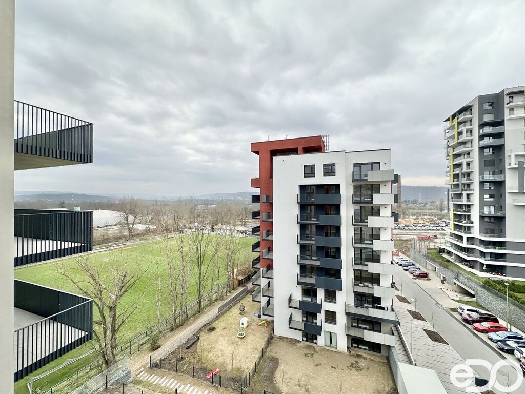 Bytová jednotka o celkové užitné ploše 62,9 m² je neobydlená a nachází se v 5. podlaží skeletové řadové novostavby. Užitná plocha bytu, tedy plocha obytných místností uvnitř vnějších stěn nemovitosti, je 51,2 m². Skládá se z velké předsíně s novou vestavěnou skříní na míru, ložnice, obývacího pokoje s novou kuchyní na míru, koupelny s vanou a umyvadlem, samostatného WC a prostorného balkonu (7,4 m²), který je přístupný z obývacího pokoje. Byt je orientovaný na severozápad. Co se týče spotřebičů, tak kuchyně disponuje indukční varnou deskou s digestoří, vestavěnou myčkou, mikrovlnnou troubou, elektrickou troubou a lednicí s mrazákem. Vše značky Siemens. K bytové jednotce dále náleží velký zděný sklep (4,3 m²) a garážové parkovací stání. Další garážová stání lze dopronajmout. Je zde také možnost využívat kočárkárnu, kolárnu či speciální místnost na mytí kol.