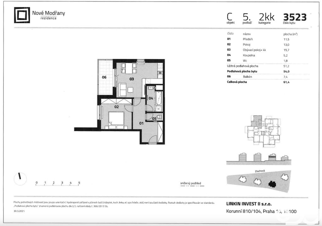 Nabízíme Vám k dlouhodobému pronájmu exkluzivní byt 2+kk 62,9 m² s balkonem a garážovým parkovacím stáním v ulici Zlochova v novém projektu Nové Modřany na Praze 12.