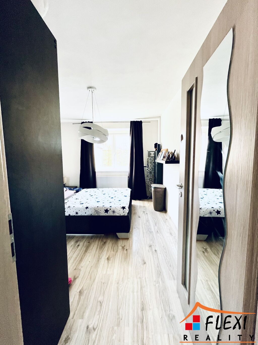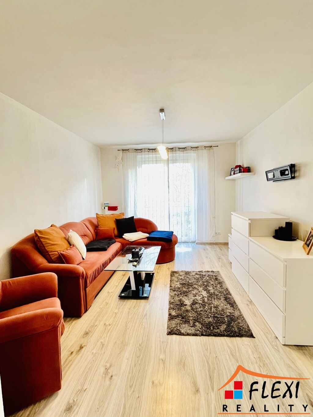 Obývací pokoj, který je průchozí s kuchyní má francouzské okno a zůstává v něm konf. stolek. Sedací souprava je možno ponechat po domluvě se stávajícím nájemníkem. V ložnici zůstává postel a skříně.