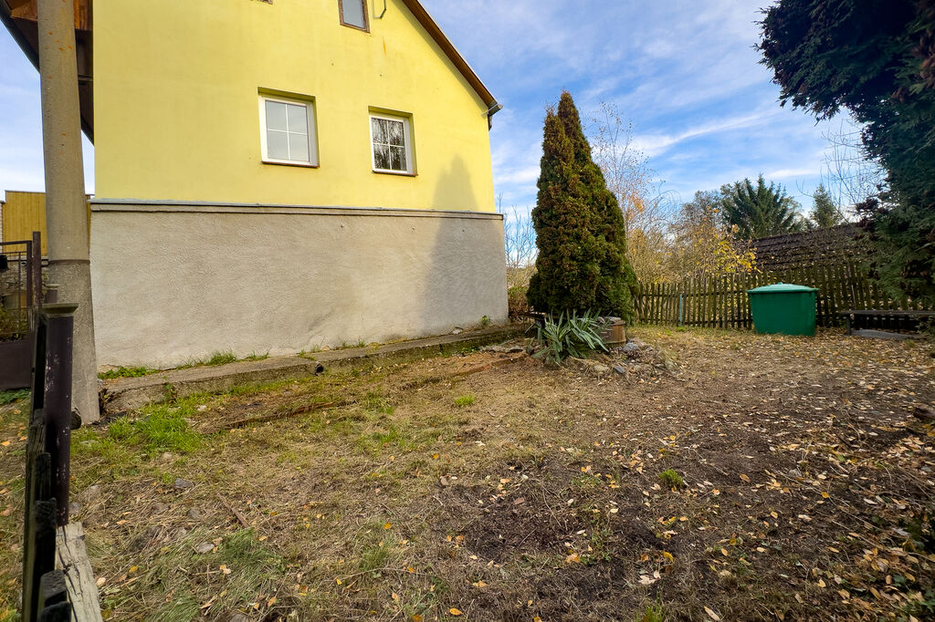 Dům je částečně podsklepen a nabízí dva sklepy o výměrách 8,7 m² a 11,4 m². Pozemek o rozloze 313 m² zahrnuje také garáž se zajímavou kamennou dlažbou a pergolu orientovanou na jih s výhledem do údolí.