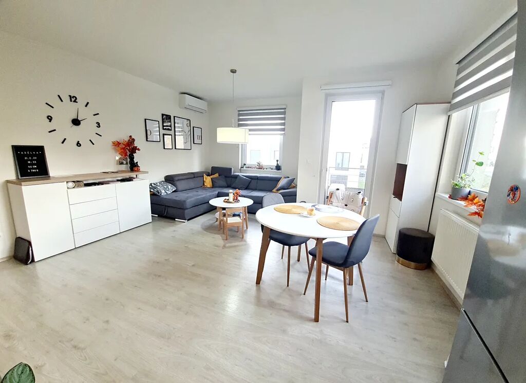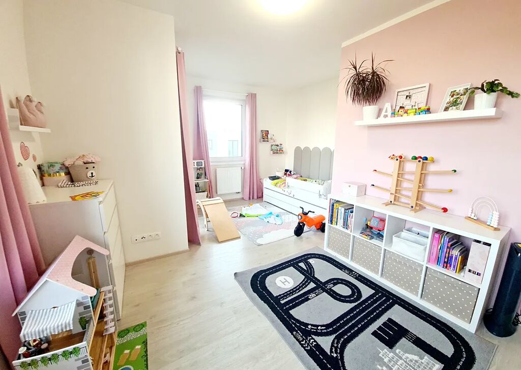 Prostorný byt se dvěma balkóny, sklepem a rozšířeným garážovým stáním, situovaný ve 2.patře novostavby s výtahem v žádané lokalitě pražských Letňan, s dobrou dostupností ke stanici metra C Letňany. Byt sestává ze vstupní haly s vestavěnou šatní skříní, samostatného WC s místem na pračku, koupelny s vanou a WC, ložnice se šatnou, dětského pokoje se vstupem na balkón a obývacího pokoje s kuchyňským koutem a vstupem na balkón. Vybaven může zůstat kuchyňskou linkou s vestavěnými spotřebiči: sklokeramickou varnou deskou, elektrickou troubou, mikrovlnnou troubou a myčkou, dále vestavěnou šatní skříní a vybavenou šatnou v ložnici. Klidné prostředí, byt je světlý, jižně orientovaný. K bytu přísluší prostorný sklep a nadstandardně široké garážové stání.