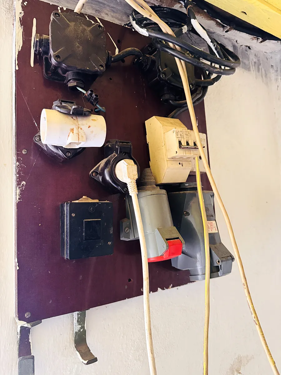 - Garáž je vybavena několika zásuvkami a připojením pro 380V.