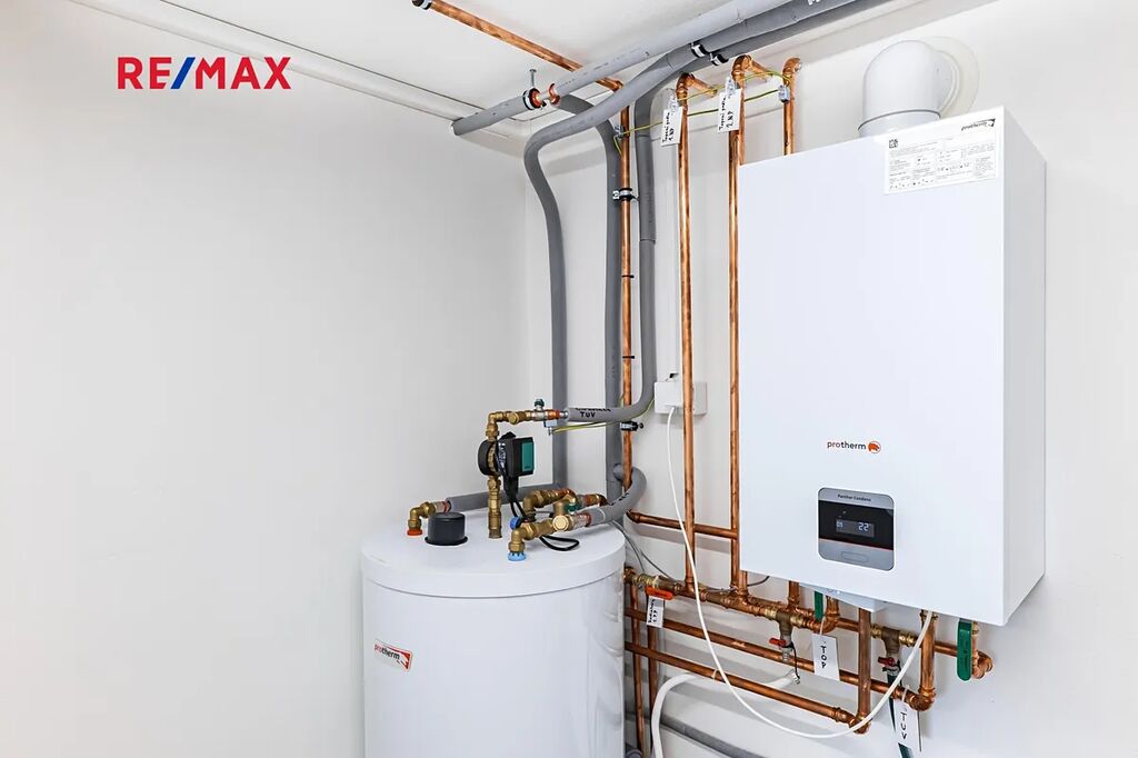 V celém domě je podlahové vytápění, napojené na plynový kondenzační kotel (který slouží i k ohřevu vody) s možností ovládání přes mobilní telefon. Okna chrání venkovní rolety, nechybí příprava na fotovoltaiku a je tu i příprava na připojení kotle na tuhá paliva. Všechny rozvody jsou zbrusu nové – topení a elektřina v mědi, voda v Alpexu, odpady v plastu. Dům je napojený na obecní vodovod a kanalizaci. Na zahradě je studna s užitkovou vodou. Stavba je precizně odizolovaná a zateplená (16 cm polystyren). Zatepleny jsou i všechny stropy včetně těch sklepních. Všude v domě je rozvedený internet za pomoci routerů. Do domu je dovedený i kabel od CETINu.