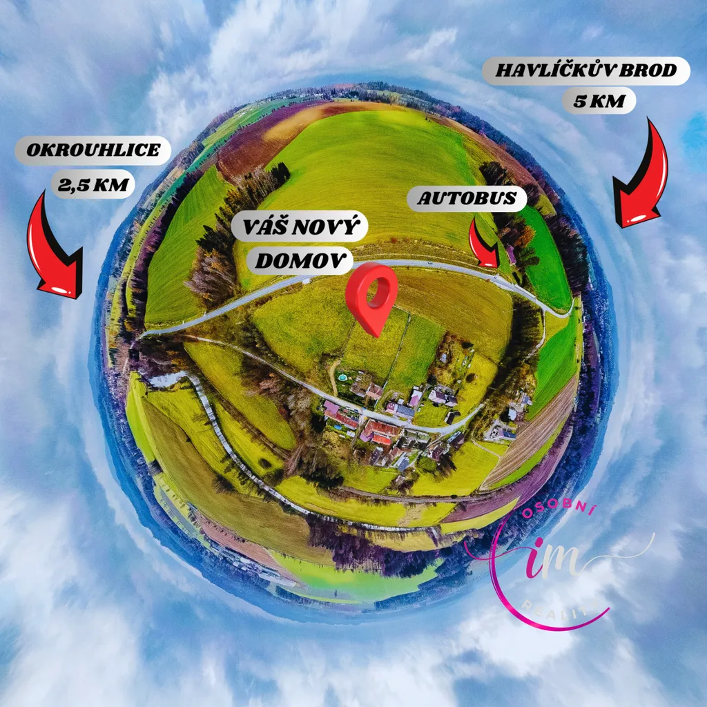 Gratuluji! Právě jste je našli. Třeba má Vaše nová budoucnost velikost 1276 m2 a čeká na Vás v Chlístově u Havlíčkova Brodu. K tomu ještě polovina příjezdové cesty i pozemku, dohromady 129 m2.
