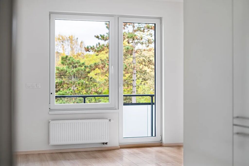 V bytě je ticho. A přesto se pořád větrá. A to díky rekuperaci, která do prostoru neustále přivádí čerstvý vzduch, aniž byste museli otevírat okna nebo přicházeli o teplo. Vzduch tu proudí tiše, přirozeně, bez průvanu. Na oknech najdete venkovní žaluzie s elektrickým ovládáním – v létě udrží byt příjemně chladný, večer zajistí tmu a klid pro nerušený spánek.