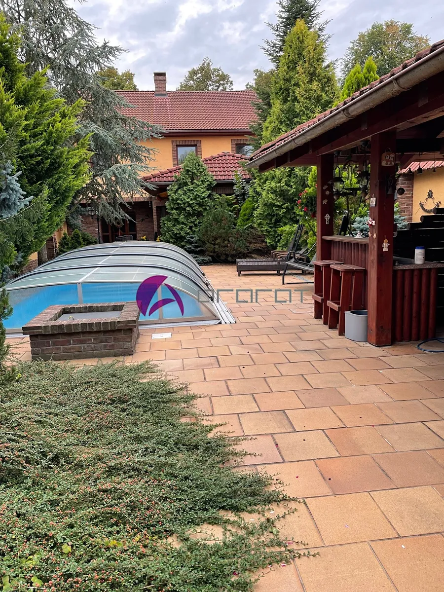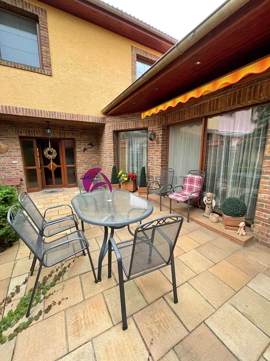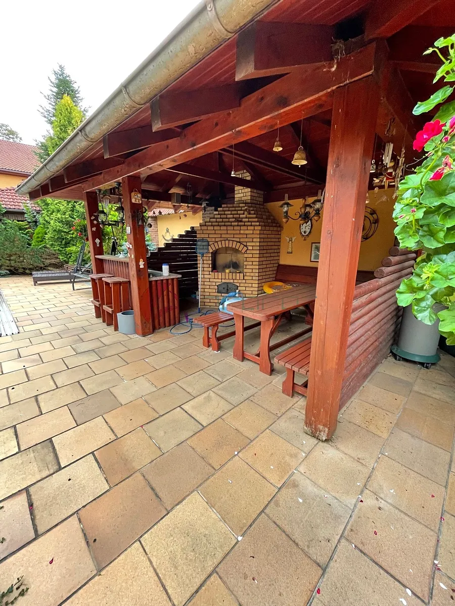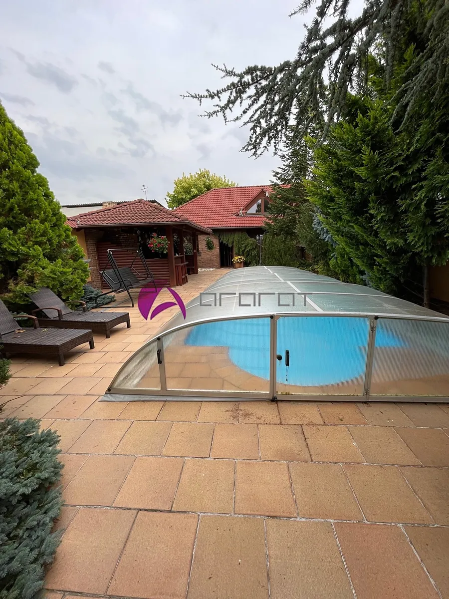 Ze spodní haly i obývacího pokoje je vstup na dvorek s pěkným posezením, navazující na prostor s velkým bazénem se slanou vodou a s přilehlým krytým dalším posezením s grilem. V místě je školka, základní škola, obchod, dobré spojení do města. Kdo má rád svůj klid, najde tu to pravé místo na bydlení. Volné od 1. 12. 2025 za cenu měsíčního nájmu 25 000,- Kč + elektřina s přepisem na nájemce (asi 7 tis.) + 2000,- Kč voda. Vratná kauce činí dva měsíční nájmy.