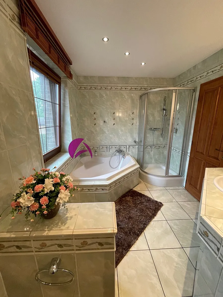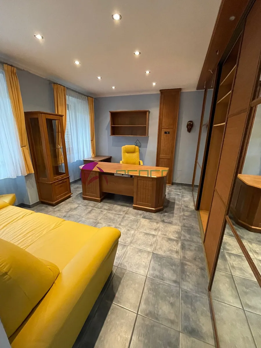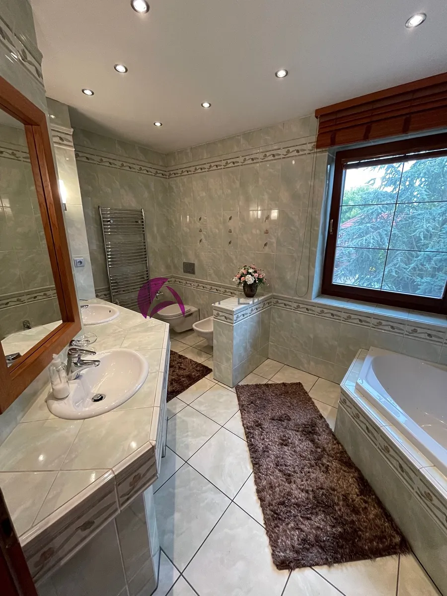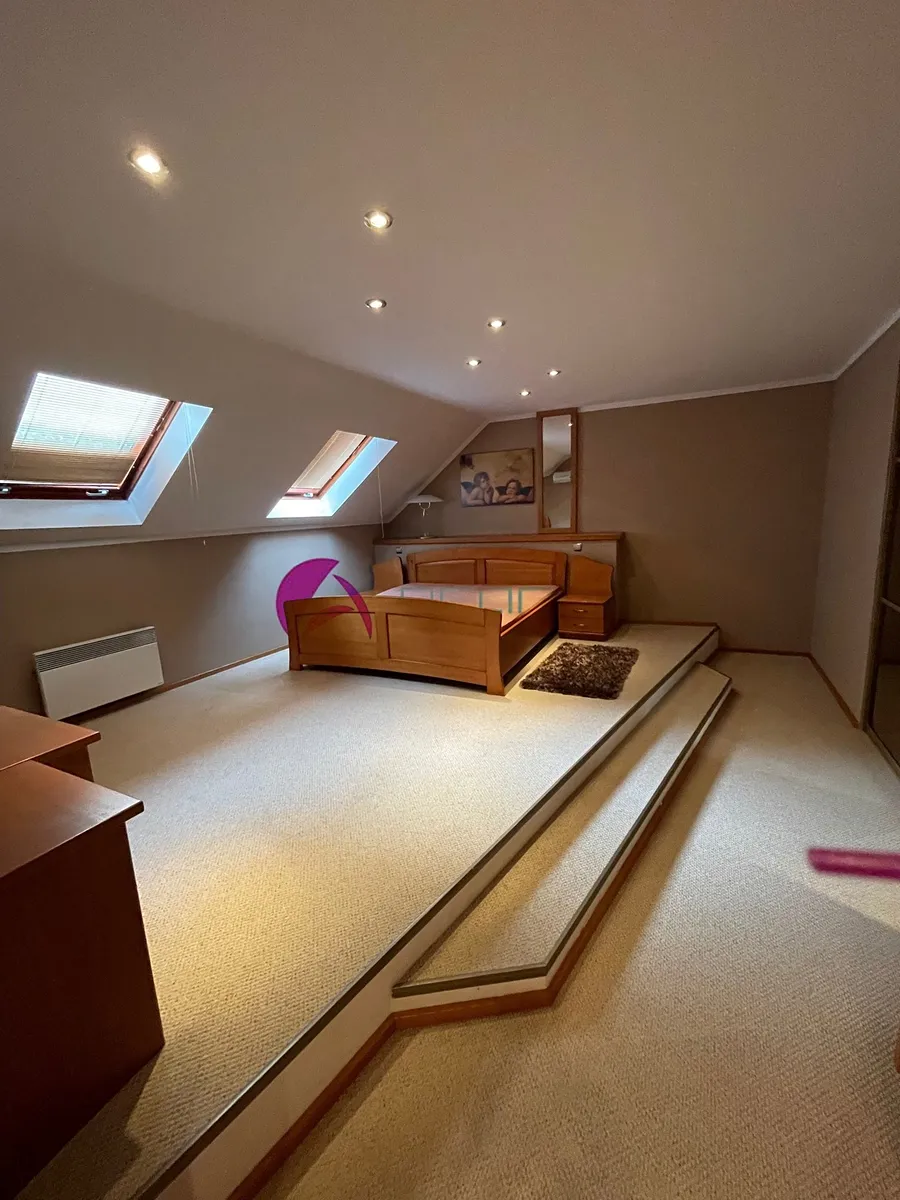 Ze spodní haly i obývacího pokoje je vstup na dvorek s pěkným posezením, navazující na prostor s velkým bazénem se slanou vodou a s přilehlým krytým dalším posezením s grilem. V místě je školka, základní škola, obchod, dobré spojení do města. Kdo má rád svůj klid, najde tu to pravé místo na bydlení. Volné od 1. 12. 2025 za cenu měsíčního nájmu 25 000,- Kč + elektřina s přepisem na nájemce (asi 7 tis.) + 2000,- Kč voda. Vratná kauce činí dva měsíční nájmy.