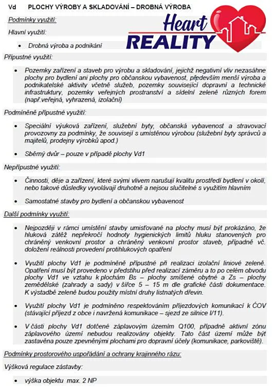 - Pozemek je určen pro plochu výroby a skladování - drobnou výrobu, což vám otevírá široké možnosti podnikání: